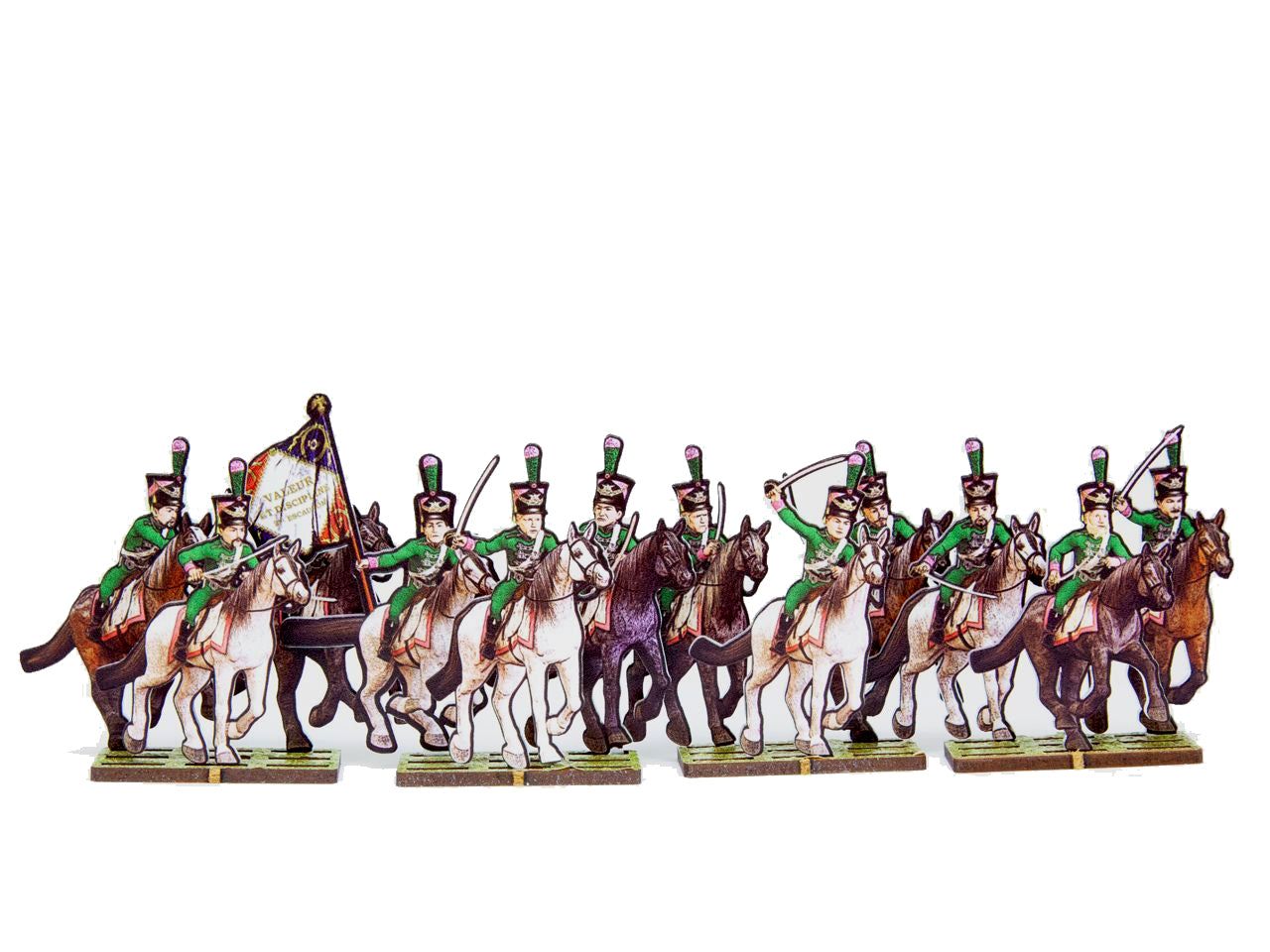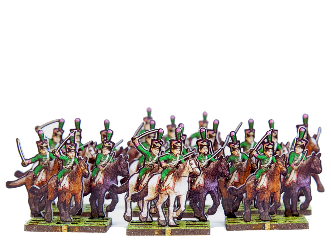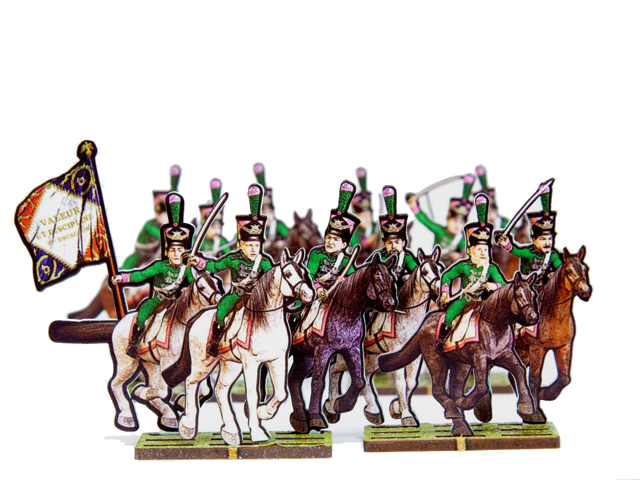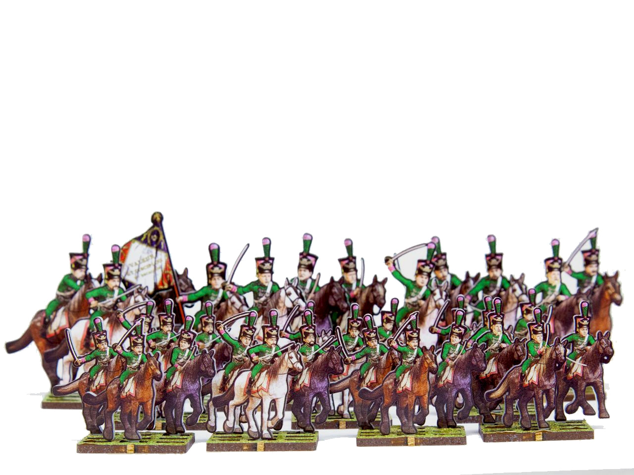 The Régiment de Chasseur a Cheval Set is crafted on a 15x20 cm Plexiglass sprue and includes:
