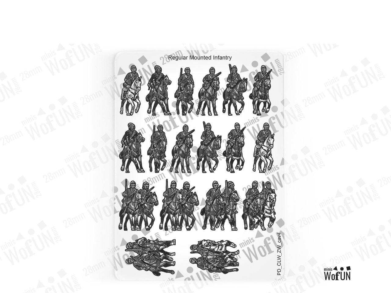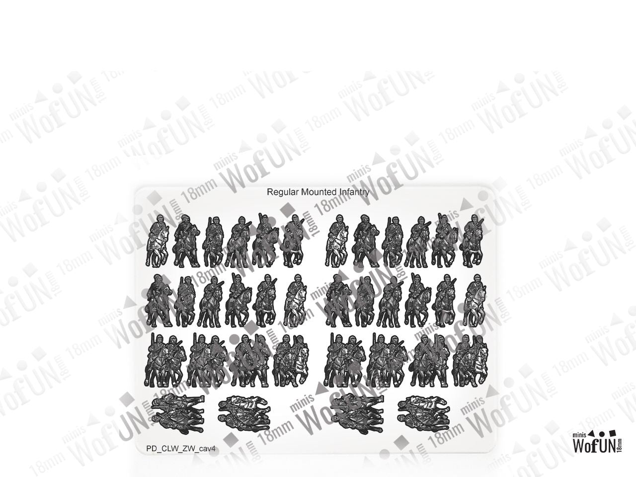 The Regular Mounted Infantry Set is crafted on a 15x20 cm Plexiglass sprue and includes: