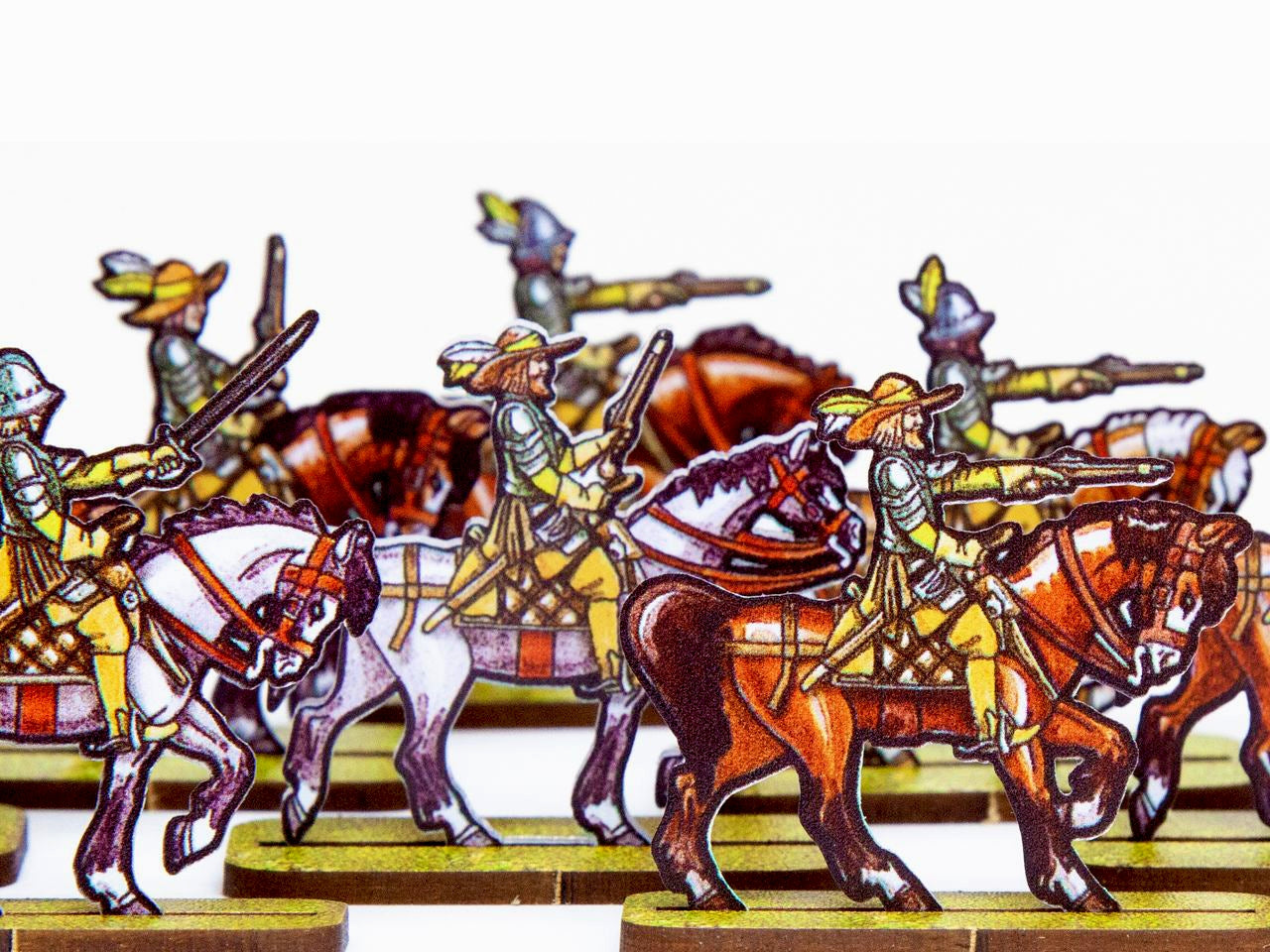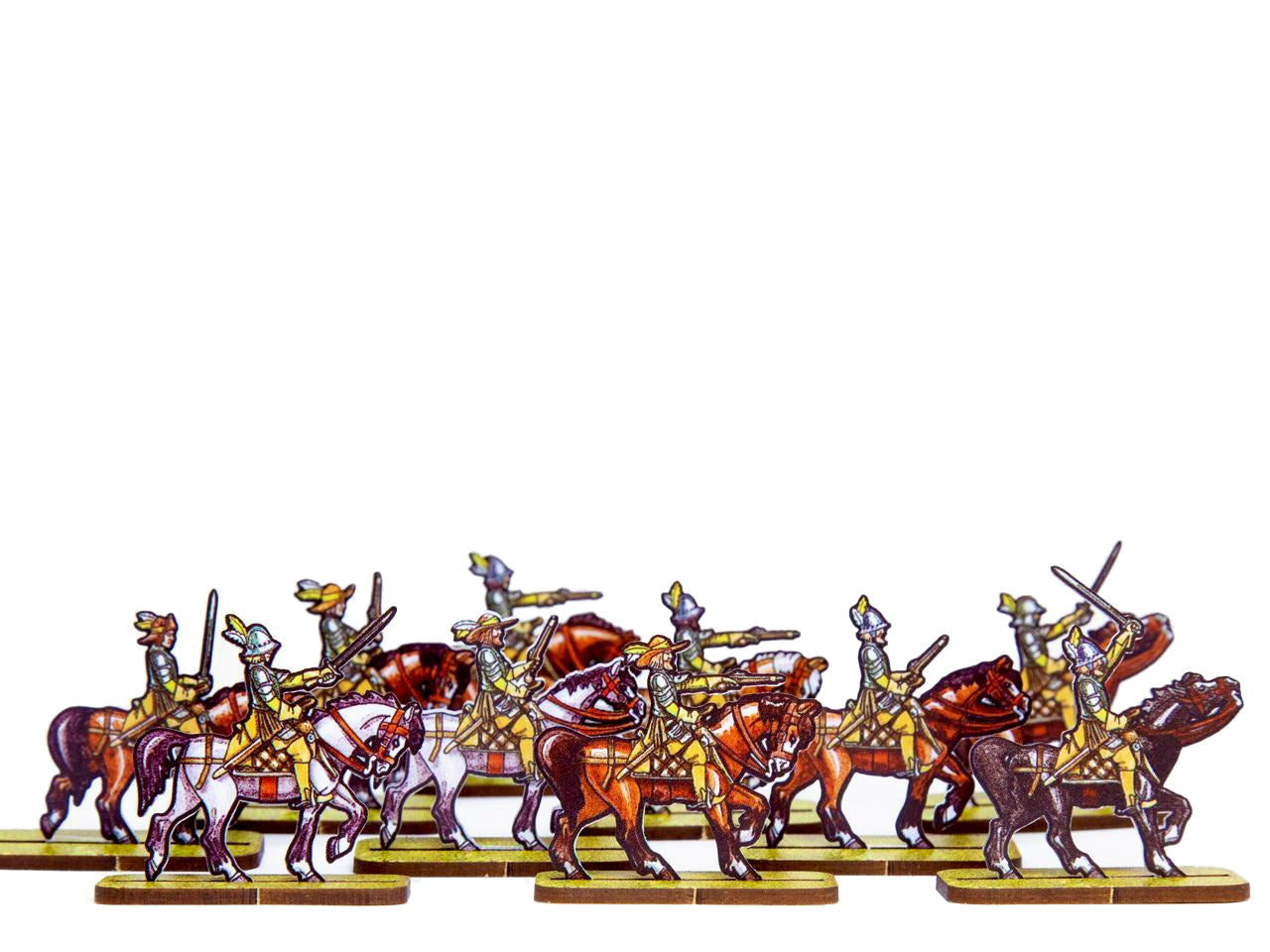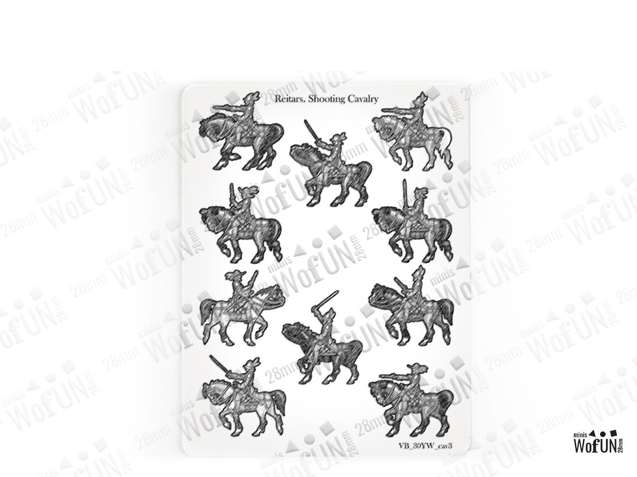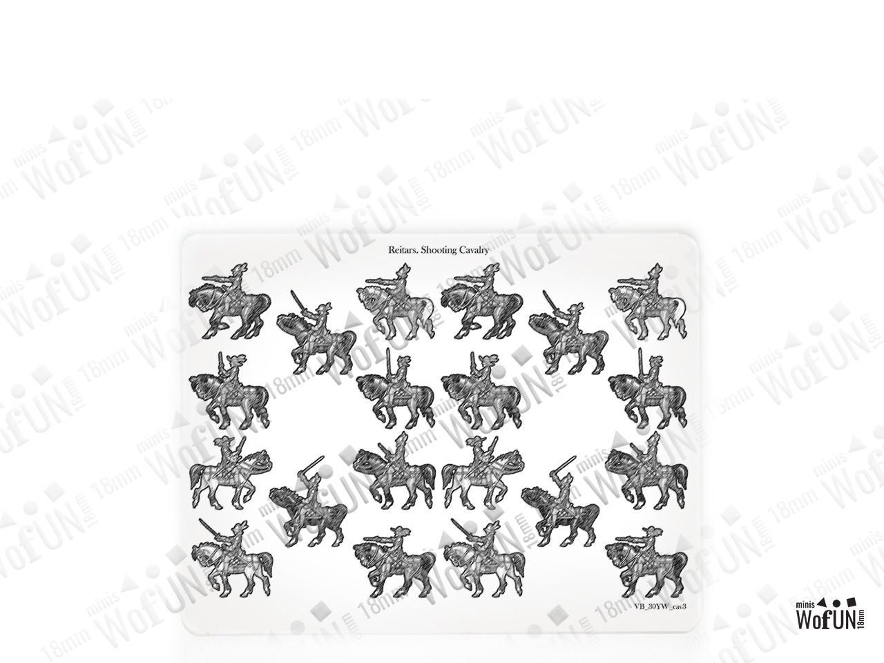 The Reiters. Shooting Cavalry Set is crafted on a 15x20 cm Plexiglass sprue and includes: