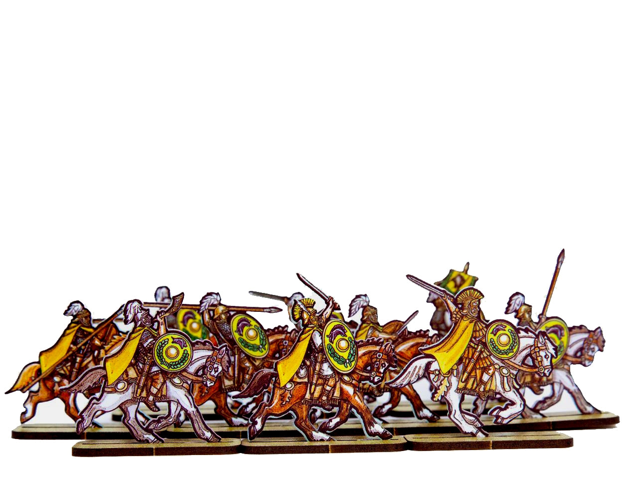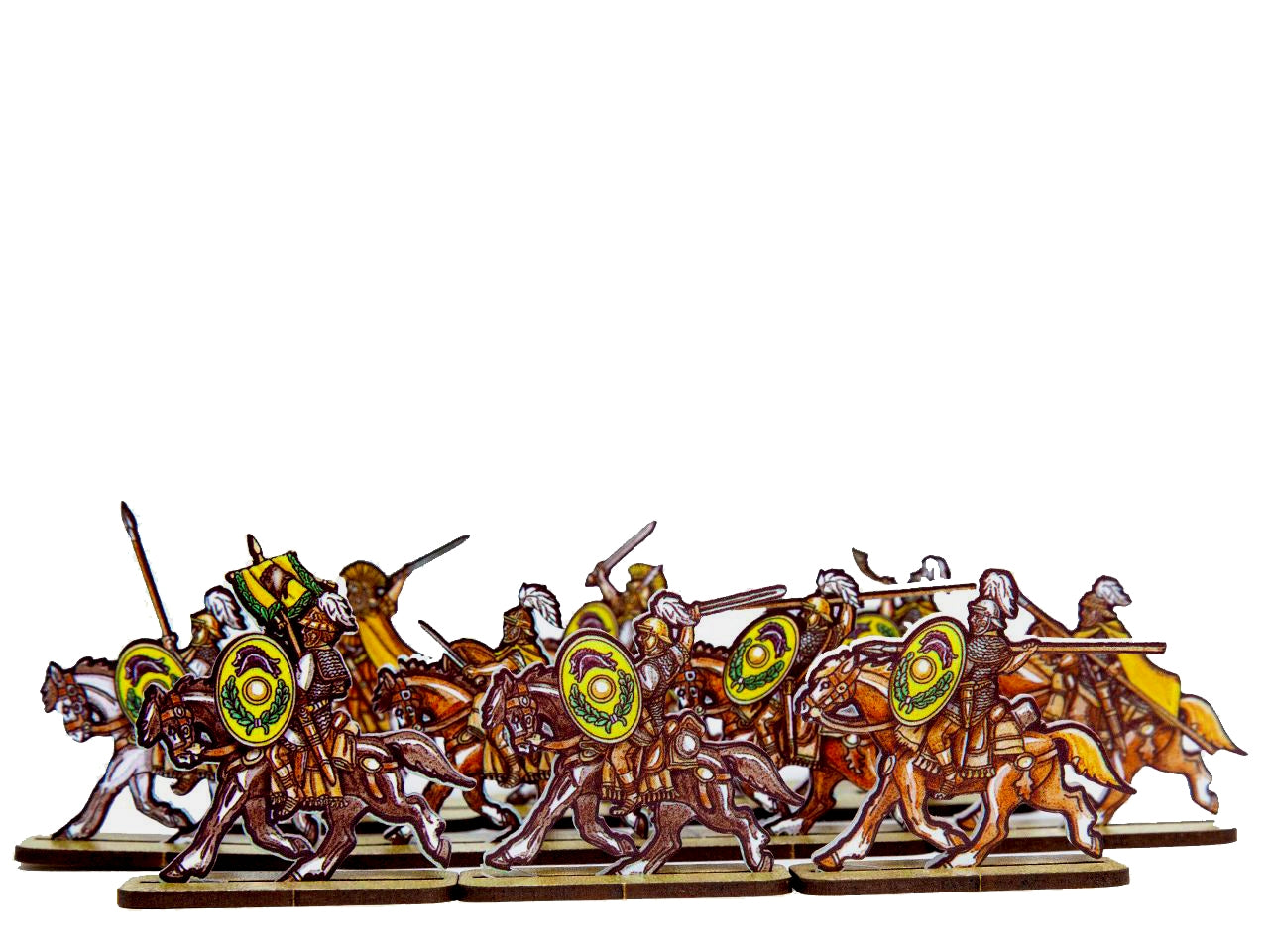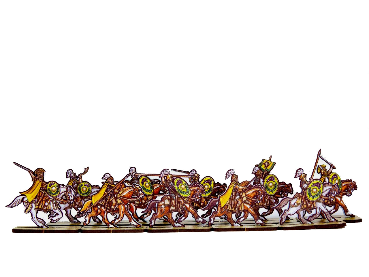 The Roman Cavalry 2 (Yellow Shields) Set is crafted on a 15x20 cm Plexiglass sprue and includes:
