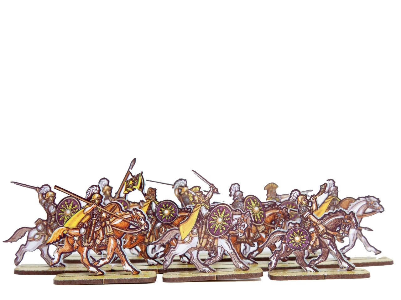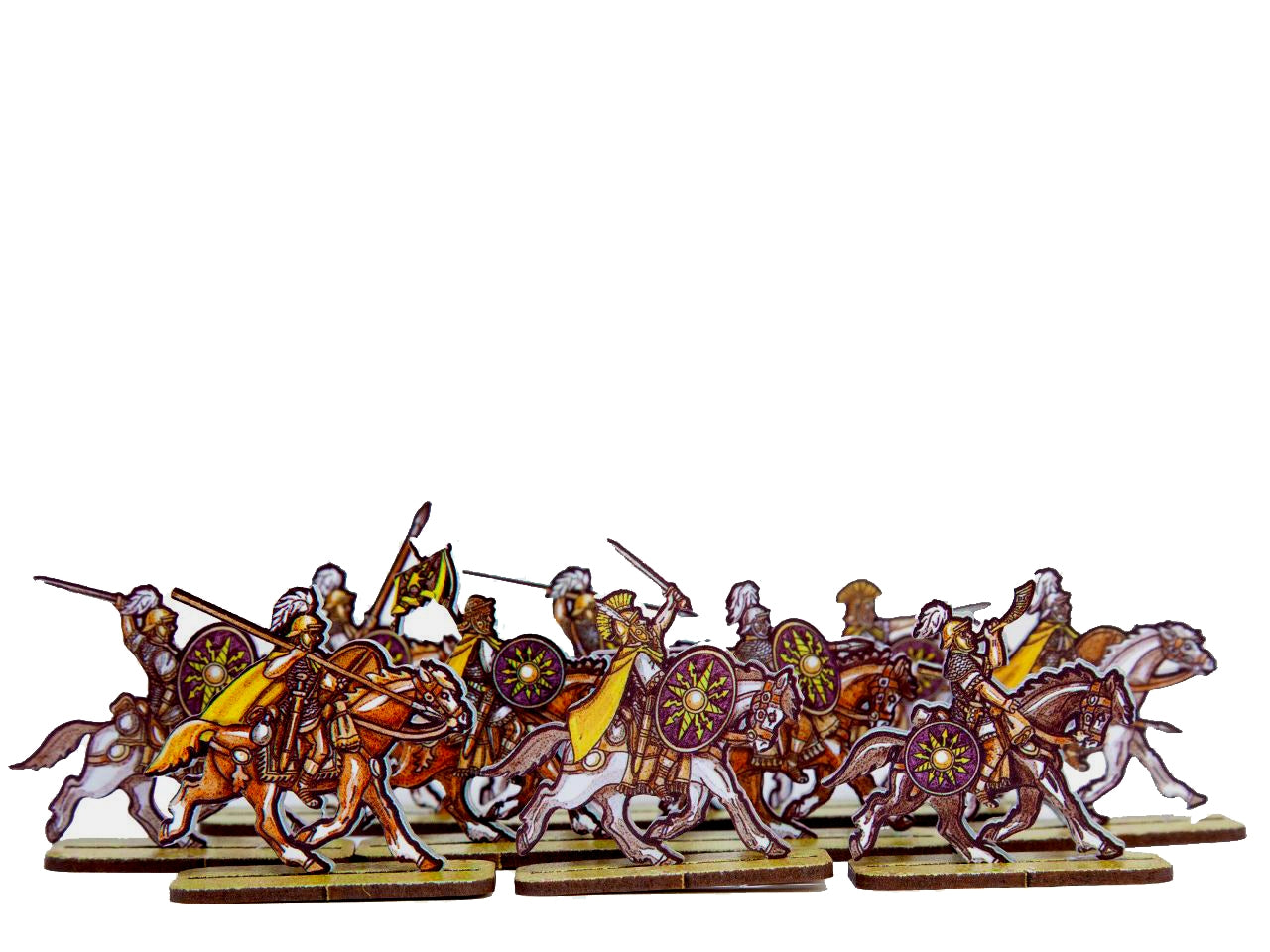 The Roman Cavalry 3 (Purple Shields) Set is crafted on a 15x20 cm Plexiglass sprue and includes: