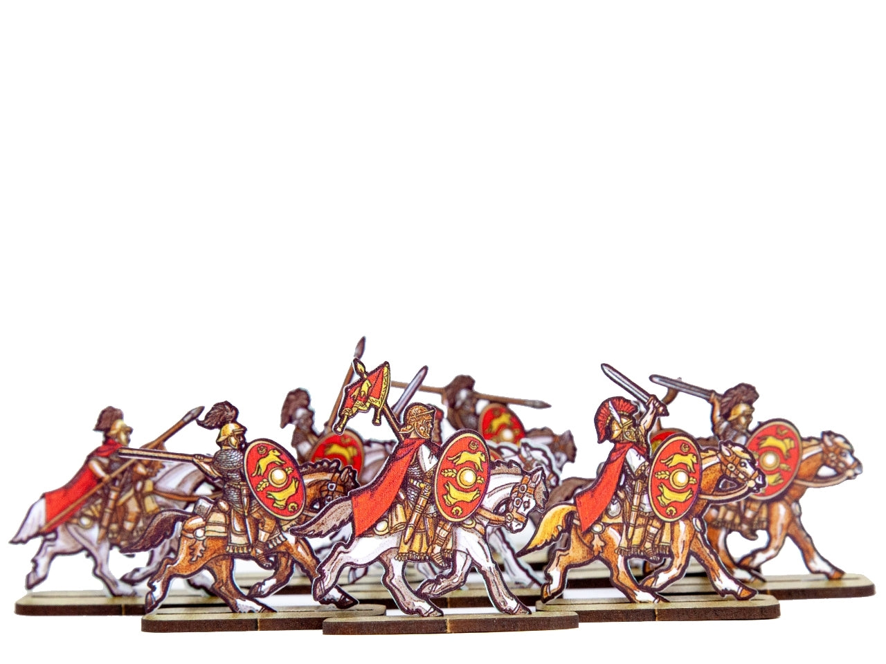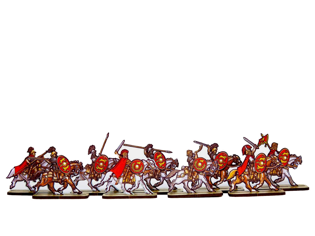 The Roman Cavalry 4 (Red Shields) Set is crafted on a 15x20 cm Plexiglass sprue and includes: