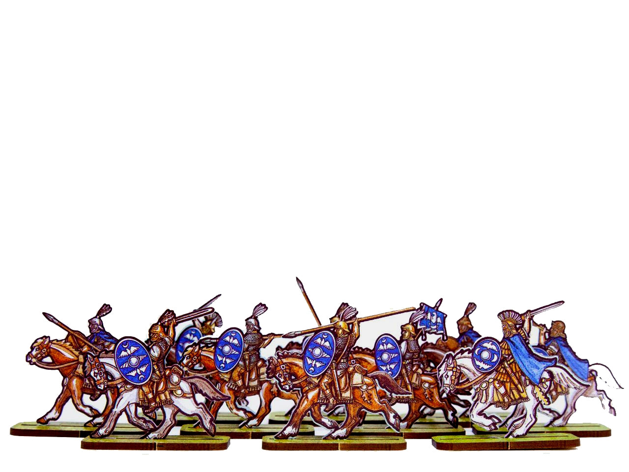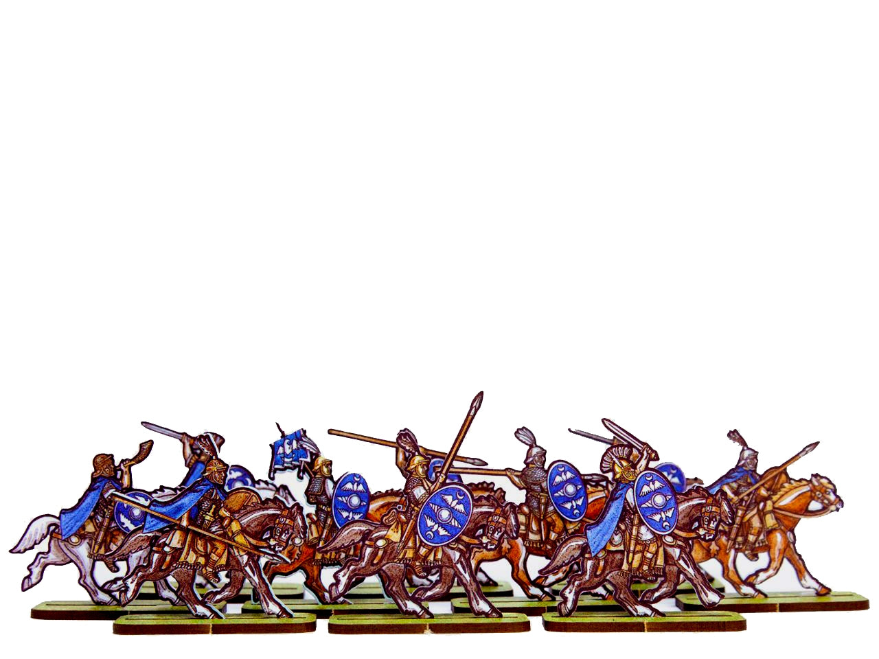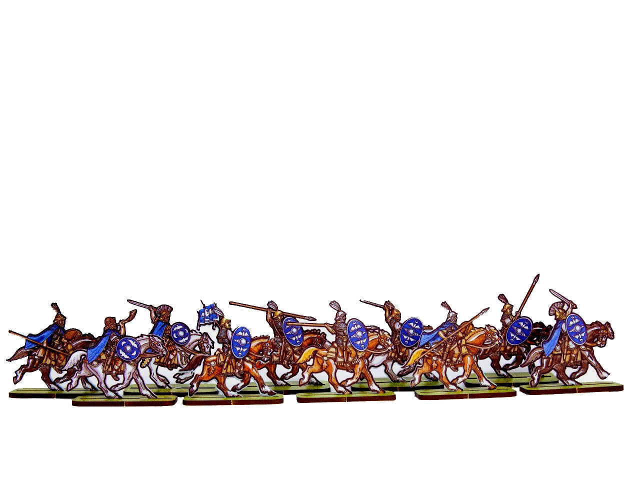 The Roman Cavalry 6 (Blue Shields) Set is crafted on a 15x20 cm Plexiglass sprue and includes: