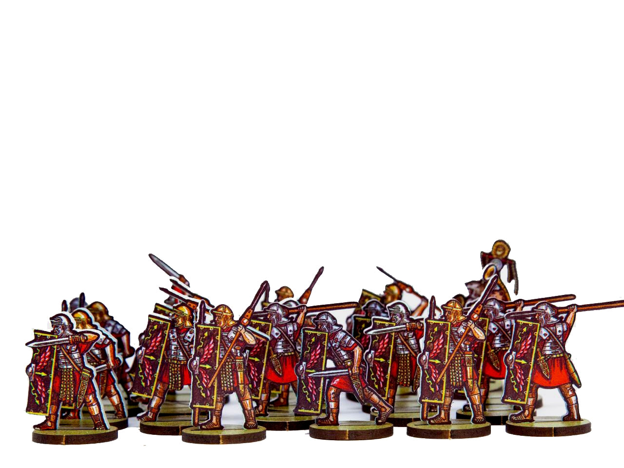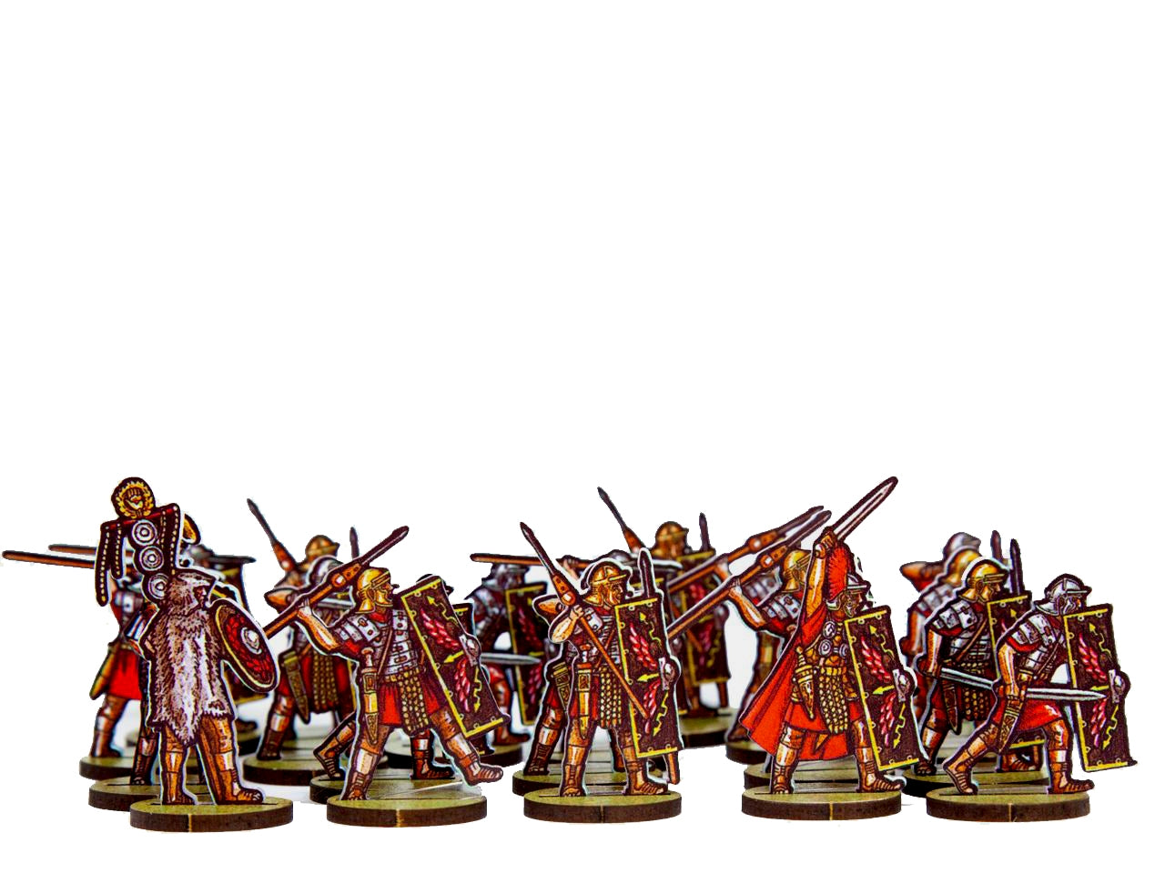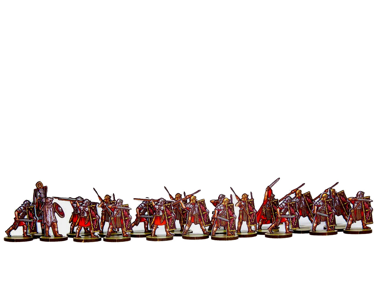The Roman Infantry 1 (Black Shileds) Set is crafted on a 15x20 cm Plexiglass sprue and includes: