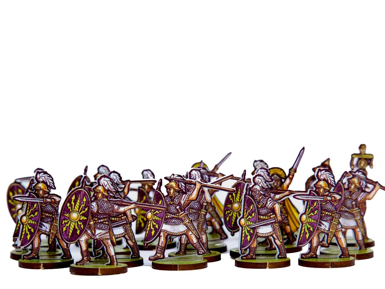 The Roman Infantry 3 (Purple Shileds) Set is crafted on a 15x20 cm Plexiglass sprue and includes:
