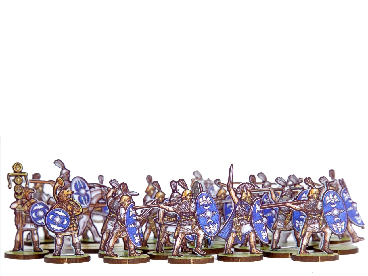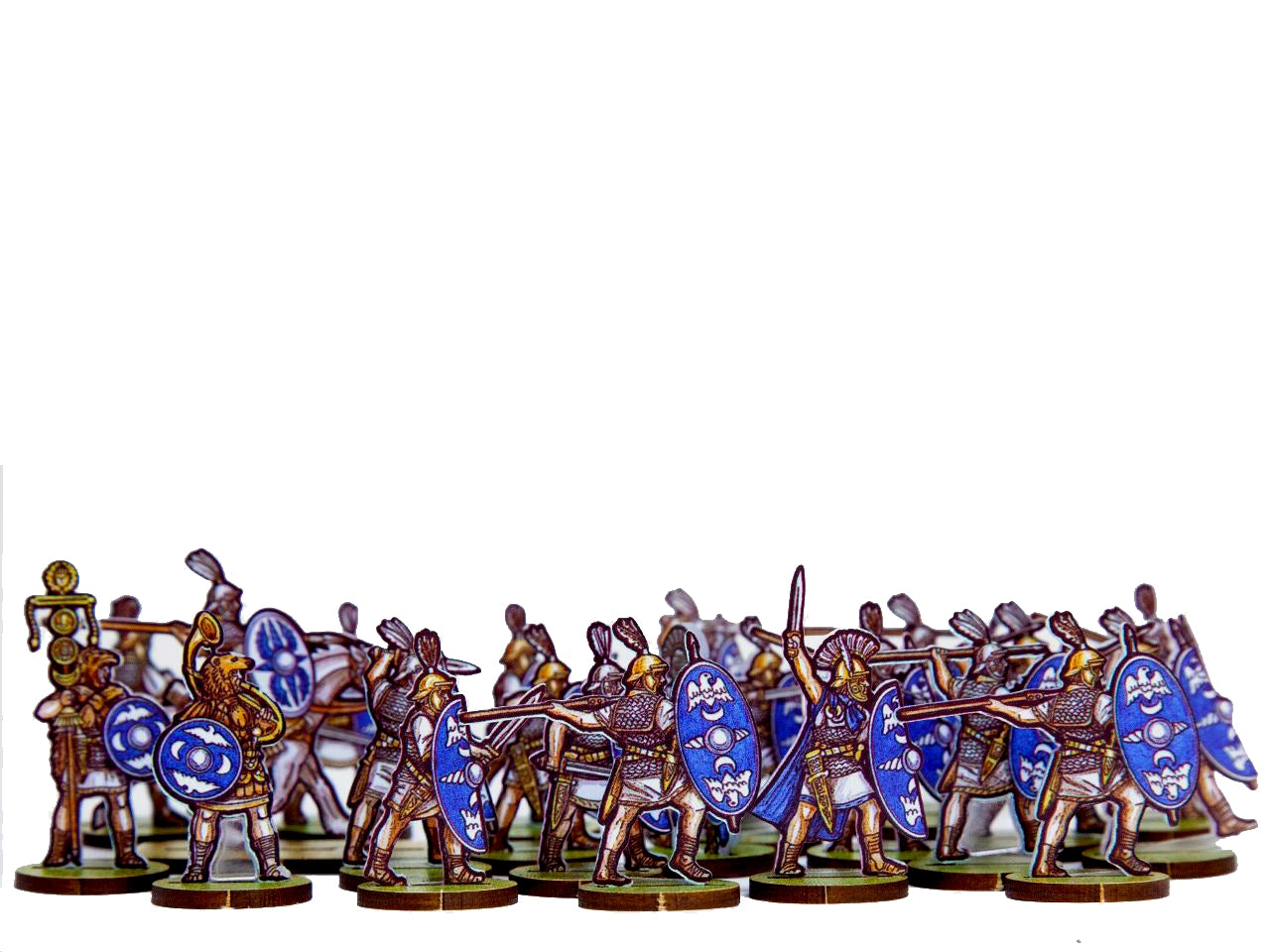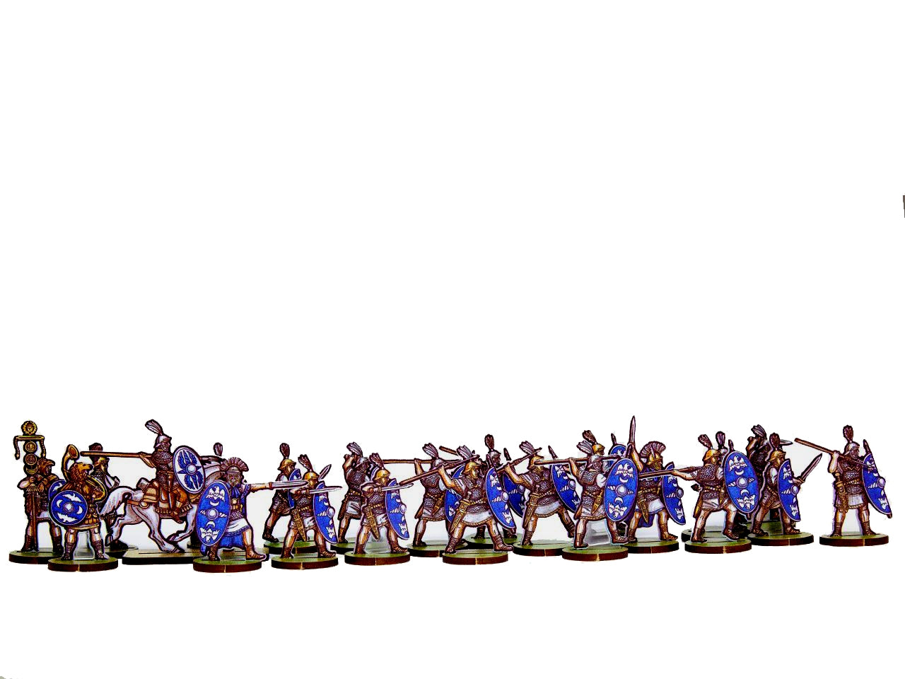 The Roman Infantry 6 (Blue Shields) Set is crafted on a 15x20 cm Plexiglass sprue and includes: