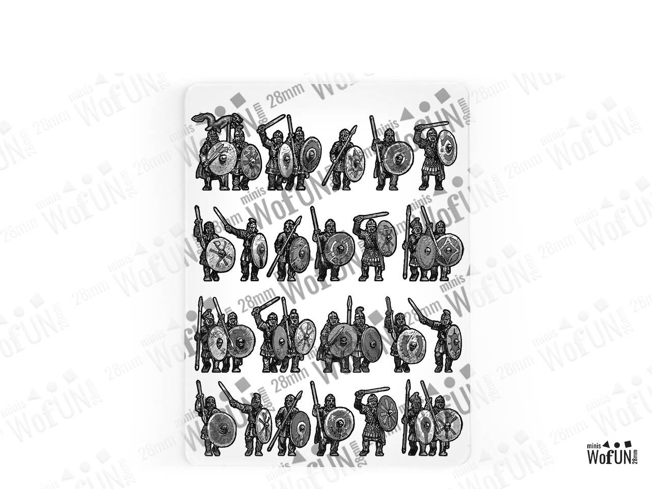 The Romano-British Armoured Warband Set is crafted on a 15x20 cm Plexiglass sprue and includes: