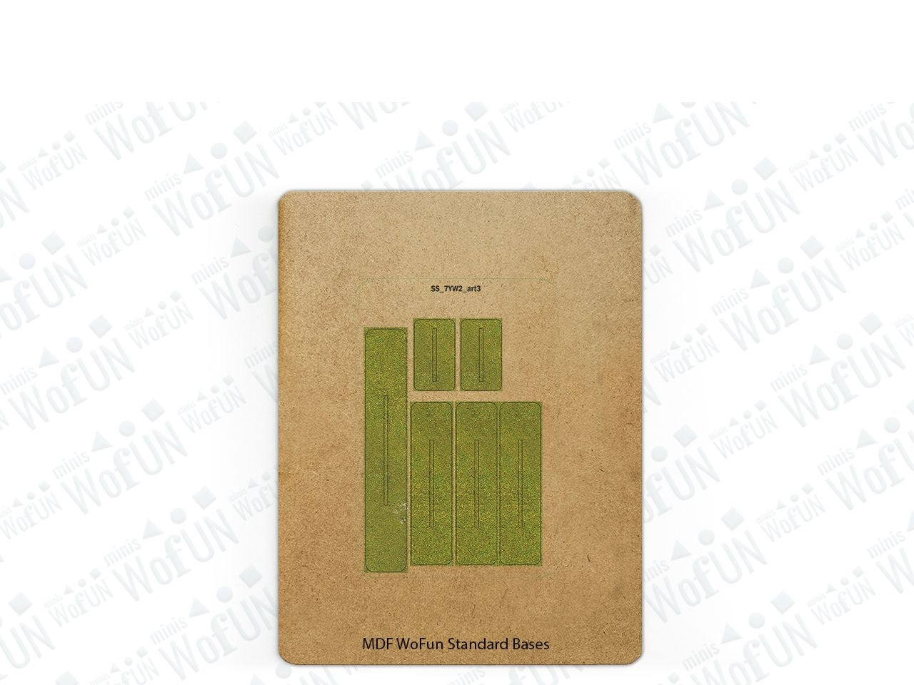 Do you offer bases with different colors/textures?Absolutely! WoFun provides custom bases with various colors and textures. Send us an email with a photo showcasing the desired texture, base size, and configuration. Keep in mind that the texture/color you see on screen might slightly differ from the actual nuance seen on the MDF sprue.
