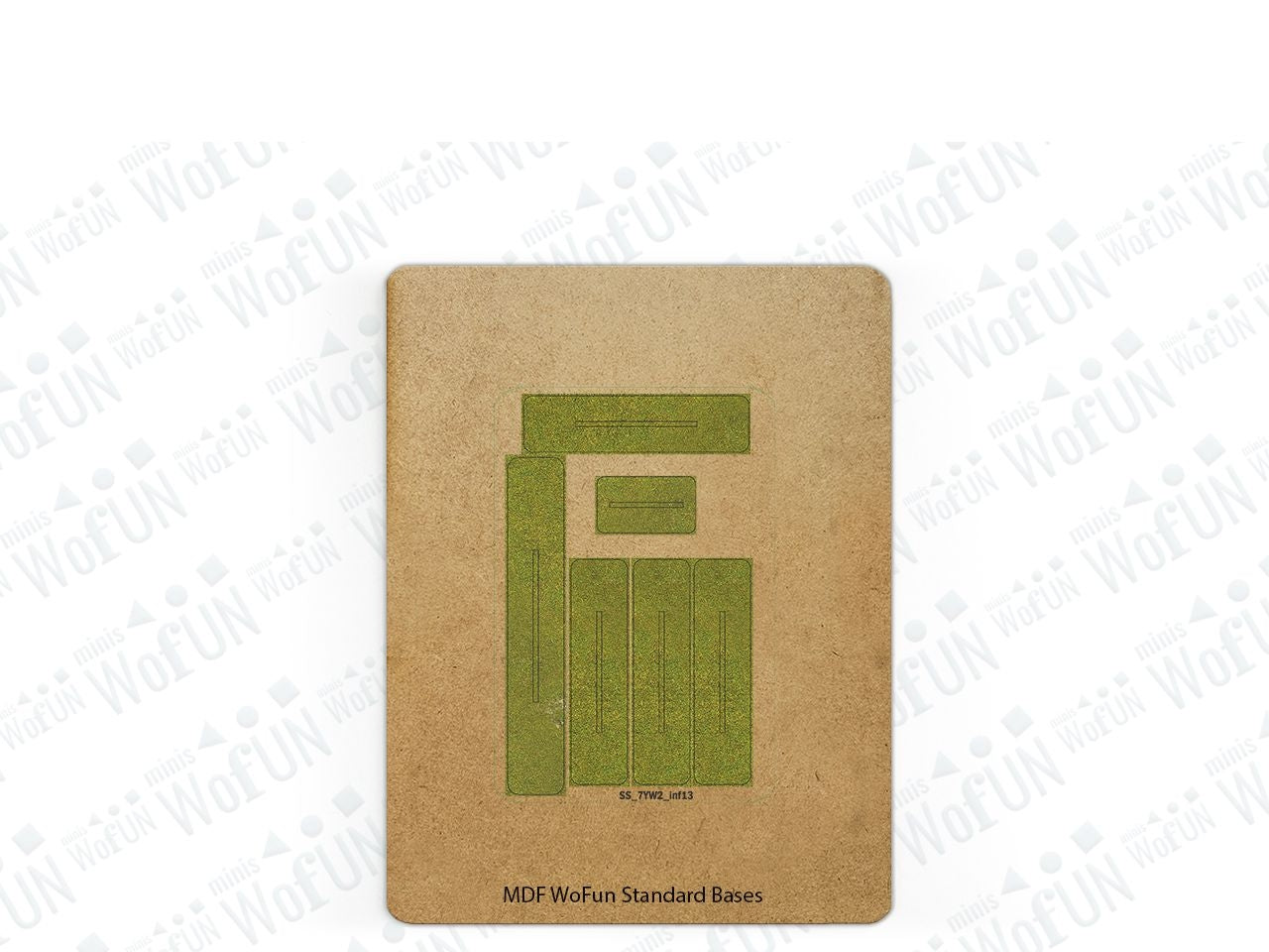 Do you offer bases with different colors/textures?Absolutely! WoFun provides custom bases with various colors and textures. Send us an email with a photo showcasing the desired texture, base size, and configuration. Keep in mind that the texture/color you see on screen might slightly differ from the actual nuance seen on the MDF sprue.