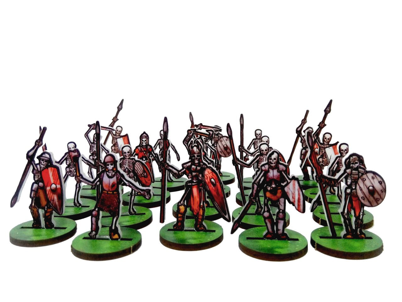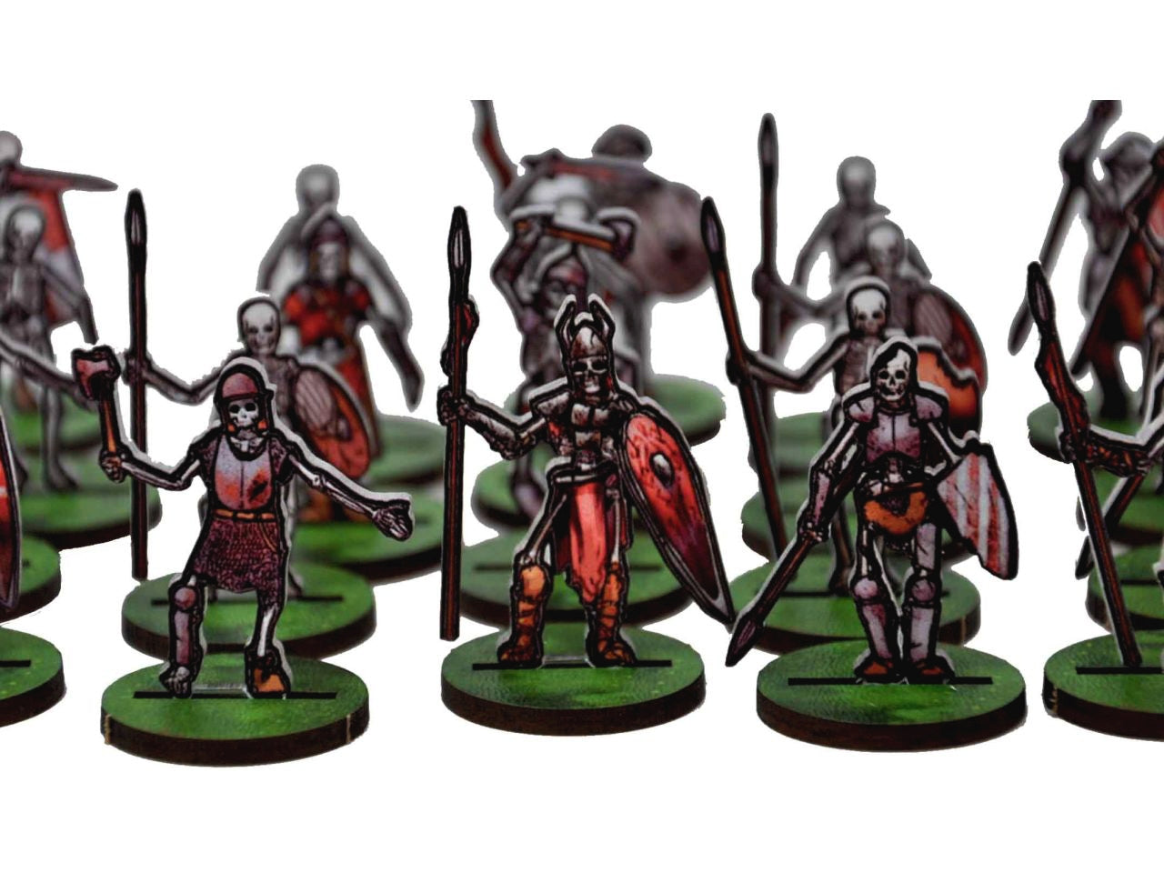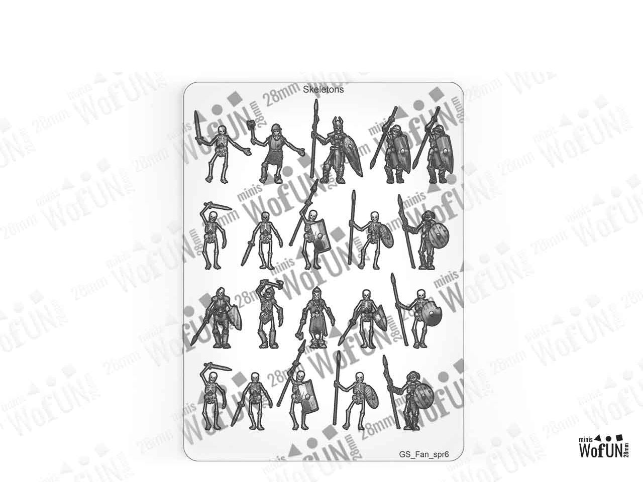 The Skeletons Set is crafted on a single 15x20 cm Plexiglass sprue and includes 14 figurines at the 28 mm scale.