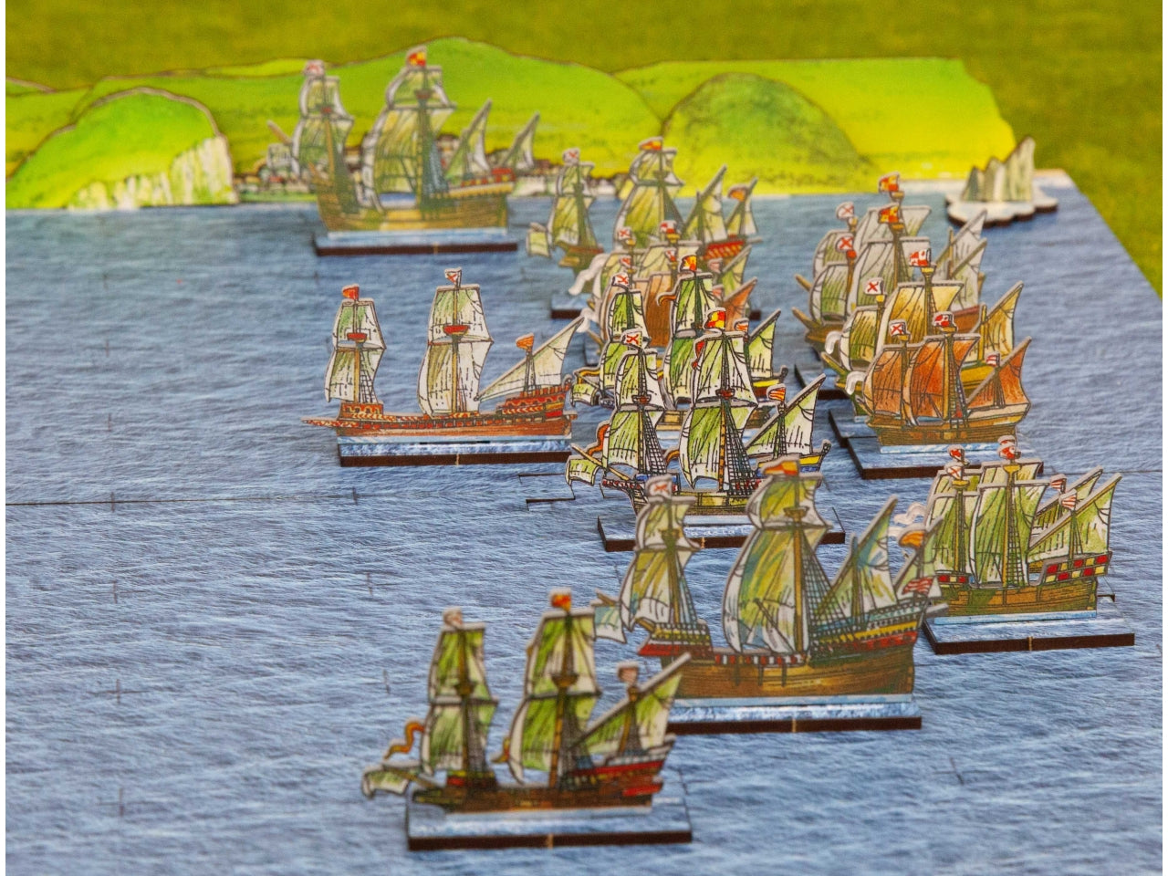 Spanish Armada Starter Pack contains 26 ships, 12 crippled ships, game markers, and a wind compass created on 5 Plexiglass sprues and a PDF set of wargaming rules for naval battles from 1588 written by Andy Callan. The PDF rules will be available on your site account in the download section right after you place the order. The size of the Plexiglass sprue is 150 mm x 200 mm. The size of a galleon (the bigger ships in the Armada collection ) is approximately 40 mm in height and 55 mm in length, the smaller ships like armed merchant ships have approximately 27 mm in height and 33 mm in length.
