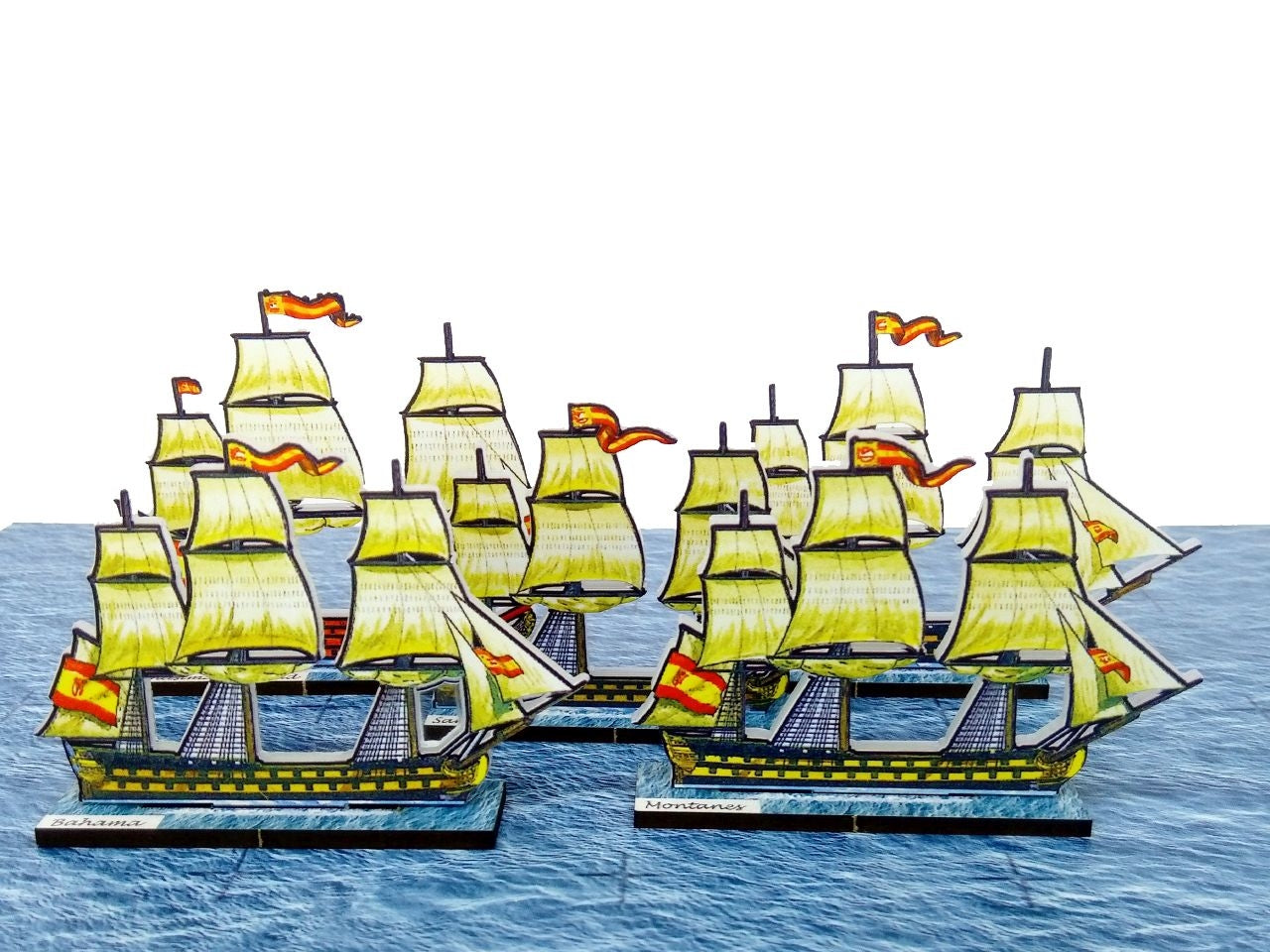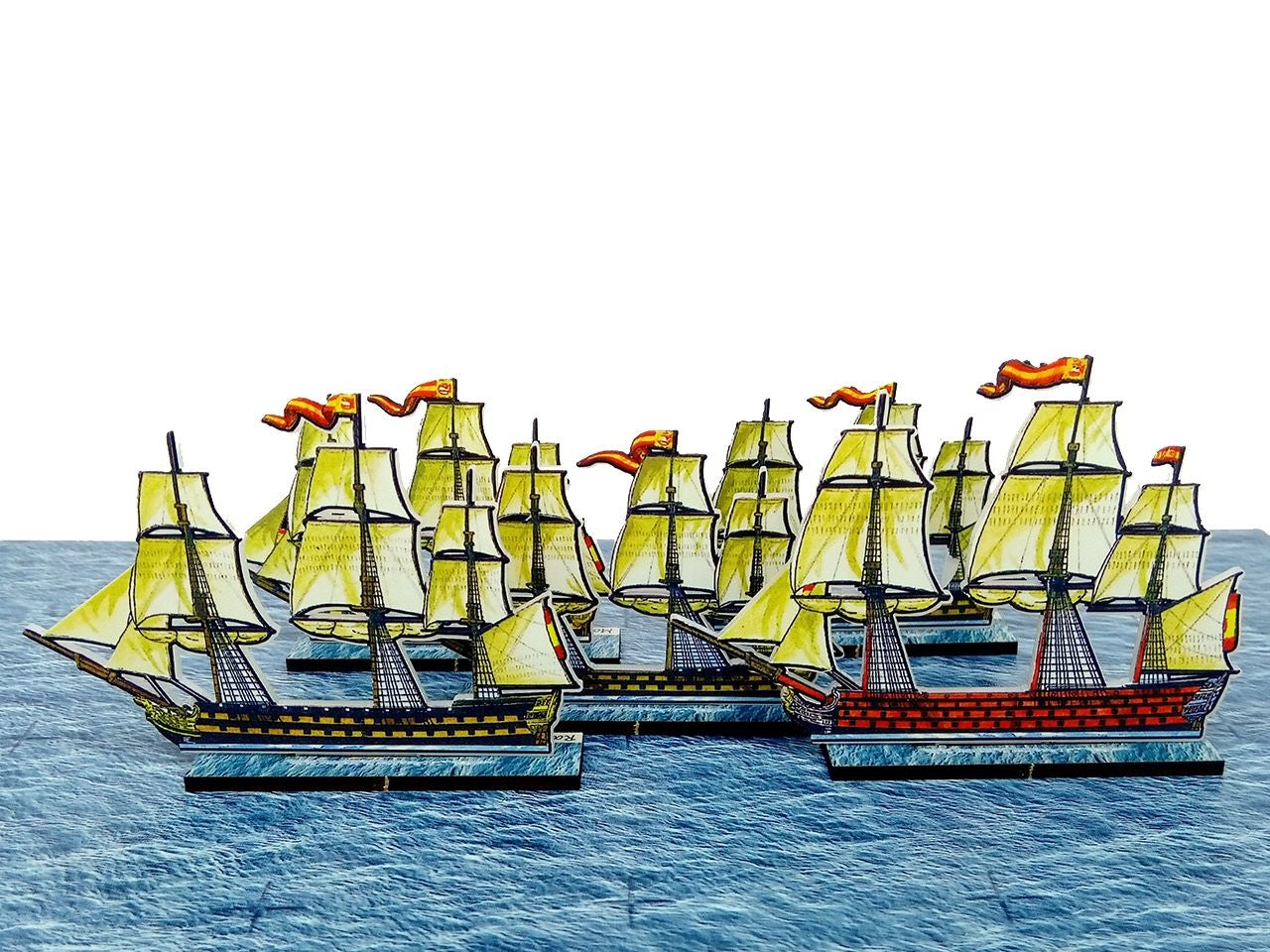 To enjoy fast wargaming, make sure to select the WoFun Standard Bases option. WoFun's Standard Bases are made from MDF (2.5 mm thickness) printed in blue (seawater texture) on one side and pre-cut with slots to hold the figurines. The bases are 15mm wide and match the length of each ship.