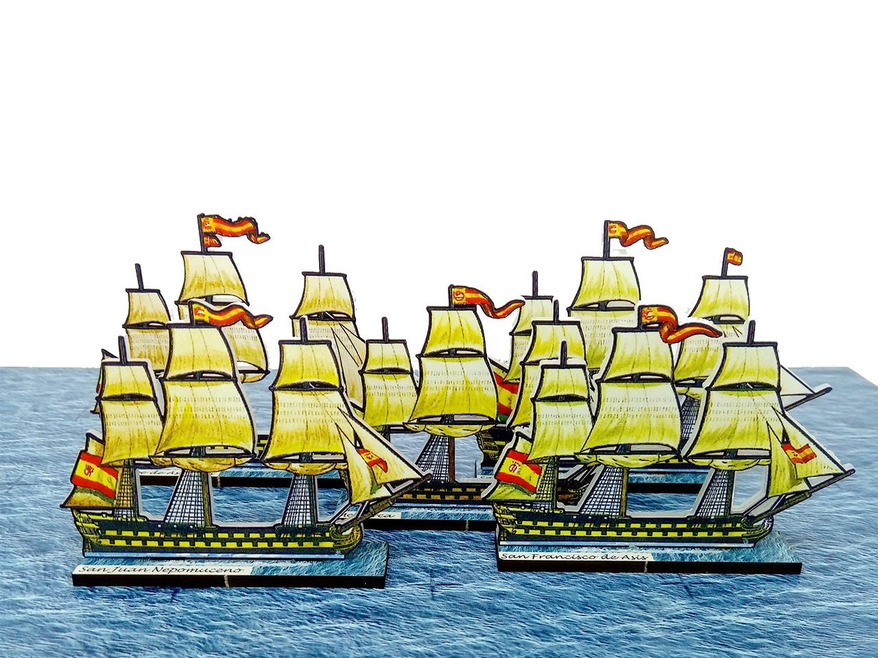 To enjoy fast wargaming, make sure to select the WoFun Standard Bases option. WoFun's Standard Bases are made from MDF (2.5 mm thickness) printed in blue (seawater texture) on one side and pre-cut with slots to hold the figurines. The bases are 15mm wide and match the length of each ship.