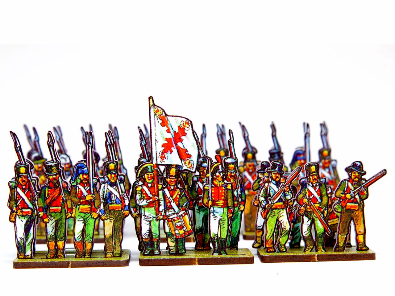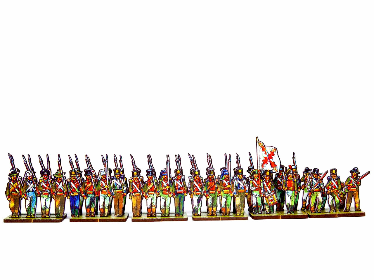 The Spanish Line Infantry - brown coats Set is crafted on a 15x20 cm Plexiglass sprue and includes: