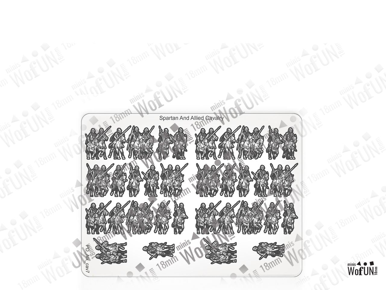 The Spartan and Allied Cavalry Set is crafted on a 15x20 cm Plexiglass sprue and includes: