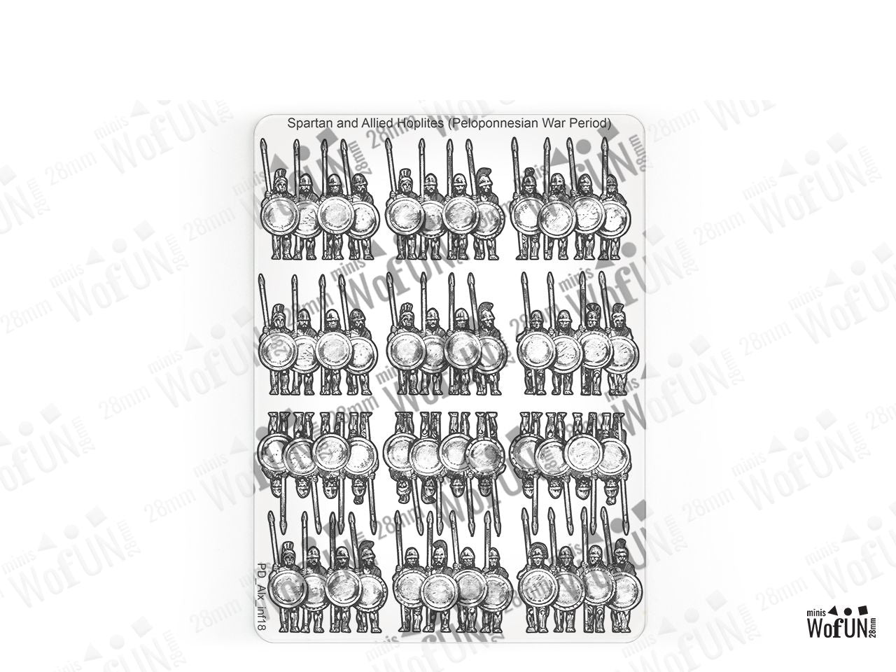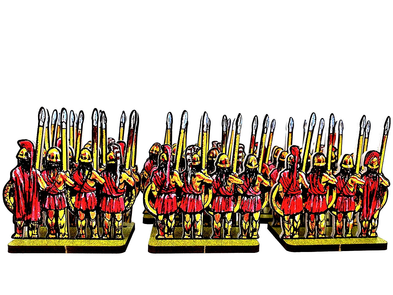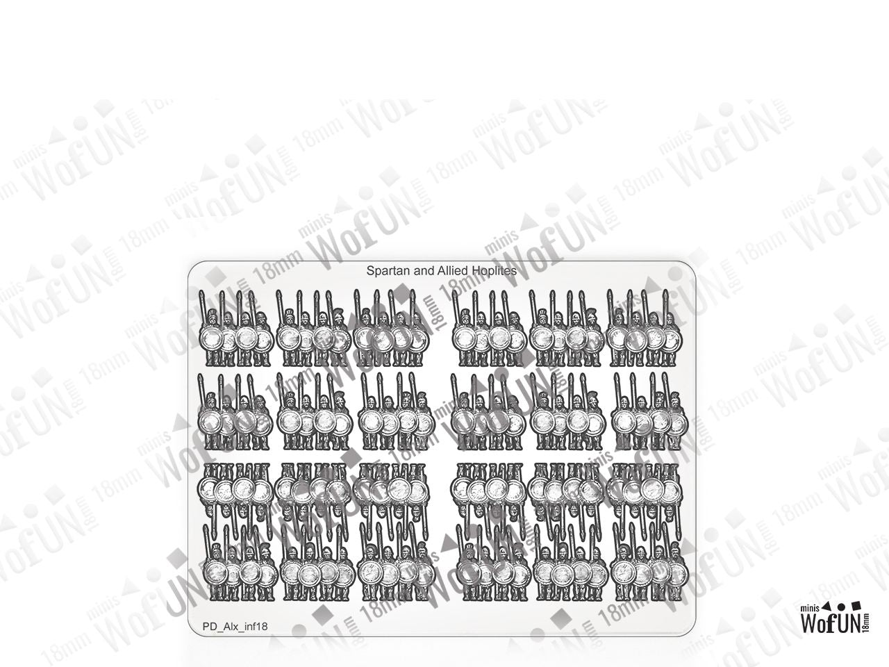The Spartan and Allied Hoplites Set is crafted on a 15x20 cm Plexiglass sprue and includes: