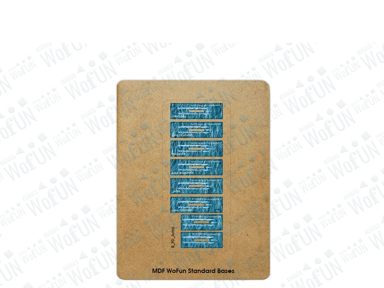 Do you offer bases with different colors/textures?Absolutely! WoFun provides custom bases with various colors and textures. Send us an email with a photo showcasing the desired texture, base size, and configuration. Keep in mind that the texture/color you see on screen might slightly differ from the actual nuance seen on the MDF sprue.