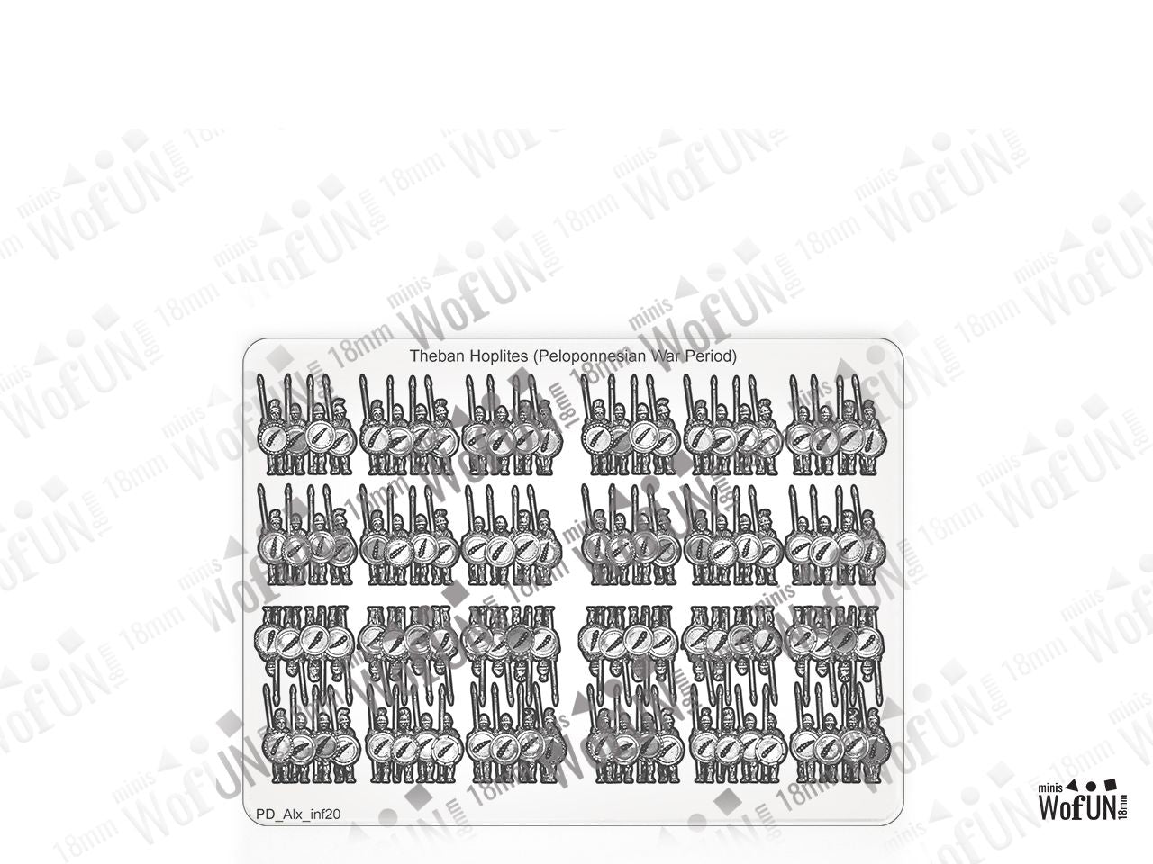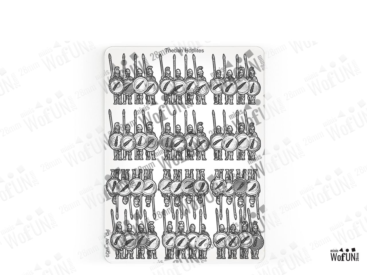 The Theban Hoplites (Peloponnesian War Period) Set is crafted on a 15x20 cm Plexiglass sprue and includes: