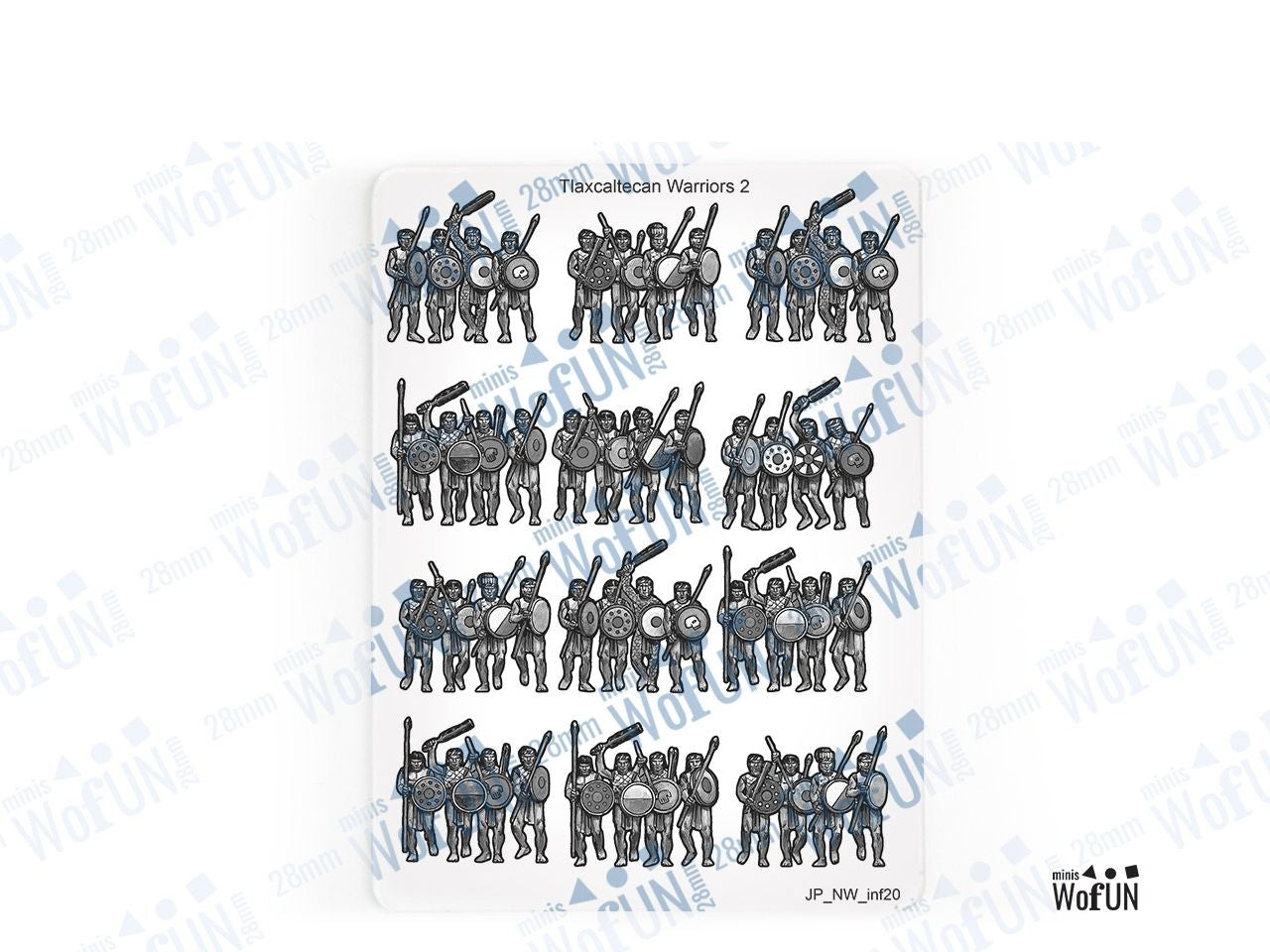The Tlaxcaltecan warriors 2 Set is crafted on a 15x20 cm Plexiglass sprue and includes: