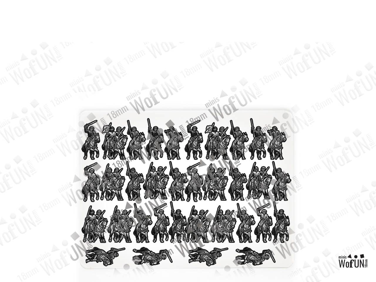 The Unarmoured Cavalry Set is crafted on a 15x20 cm Plexiglass sprue and includes: