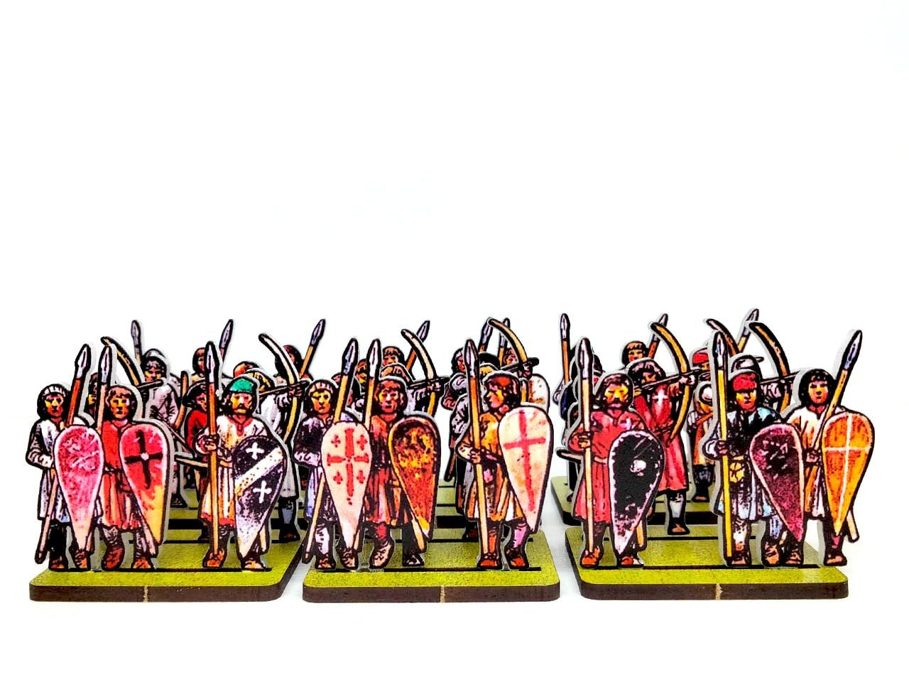 The Unarmoured Spear and Bow Infantry Set is crafted on a 15x20 cm Plexiglass sprue and includes: