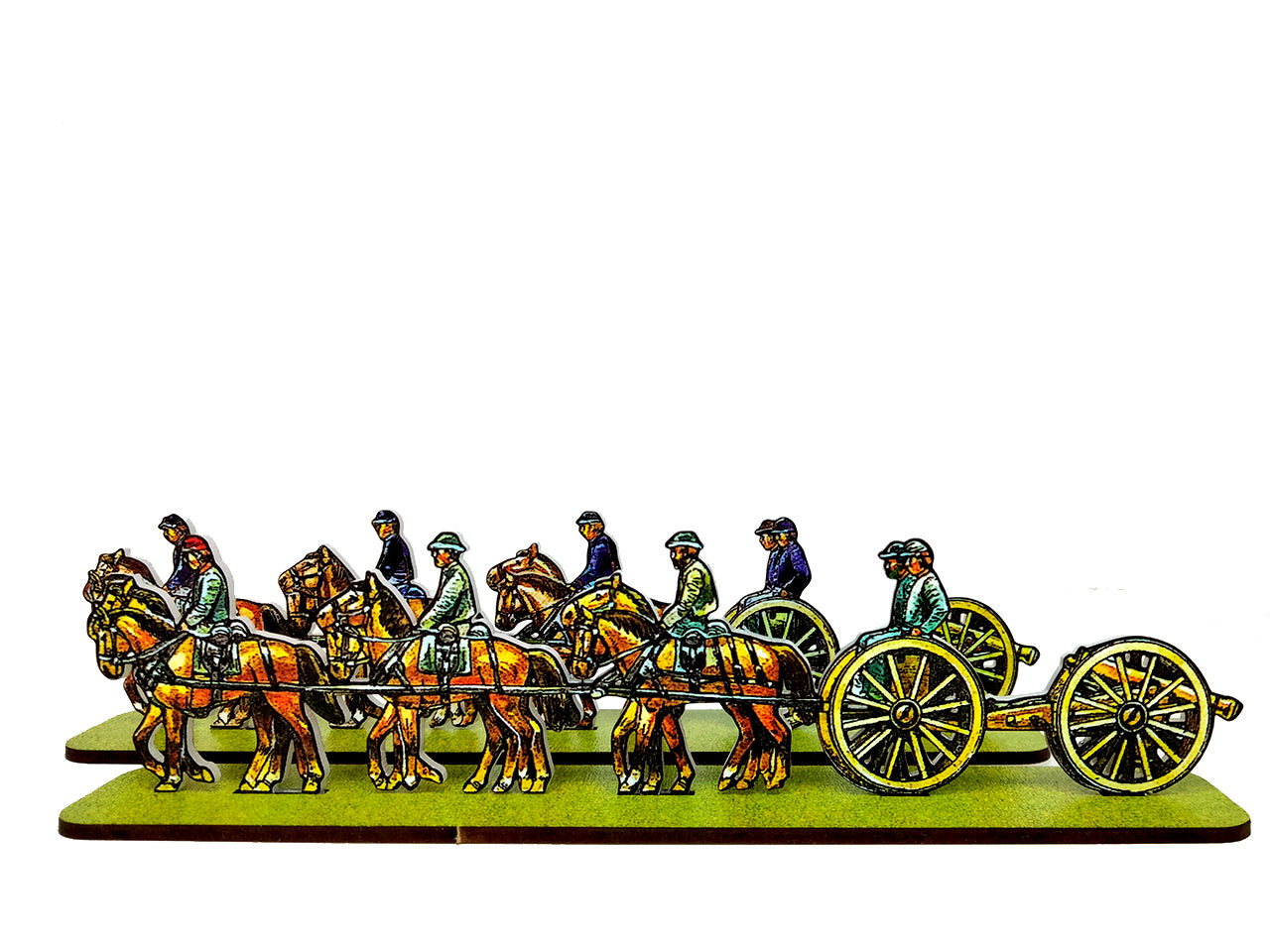 - two groups of horsemen pulling a cannon (one for each army), at the 28mm scale, or