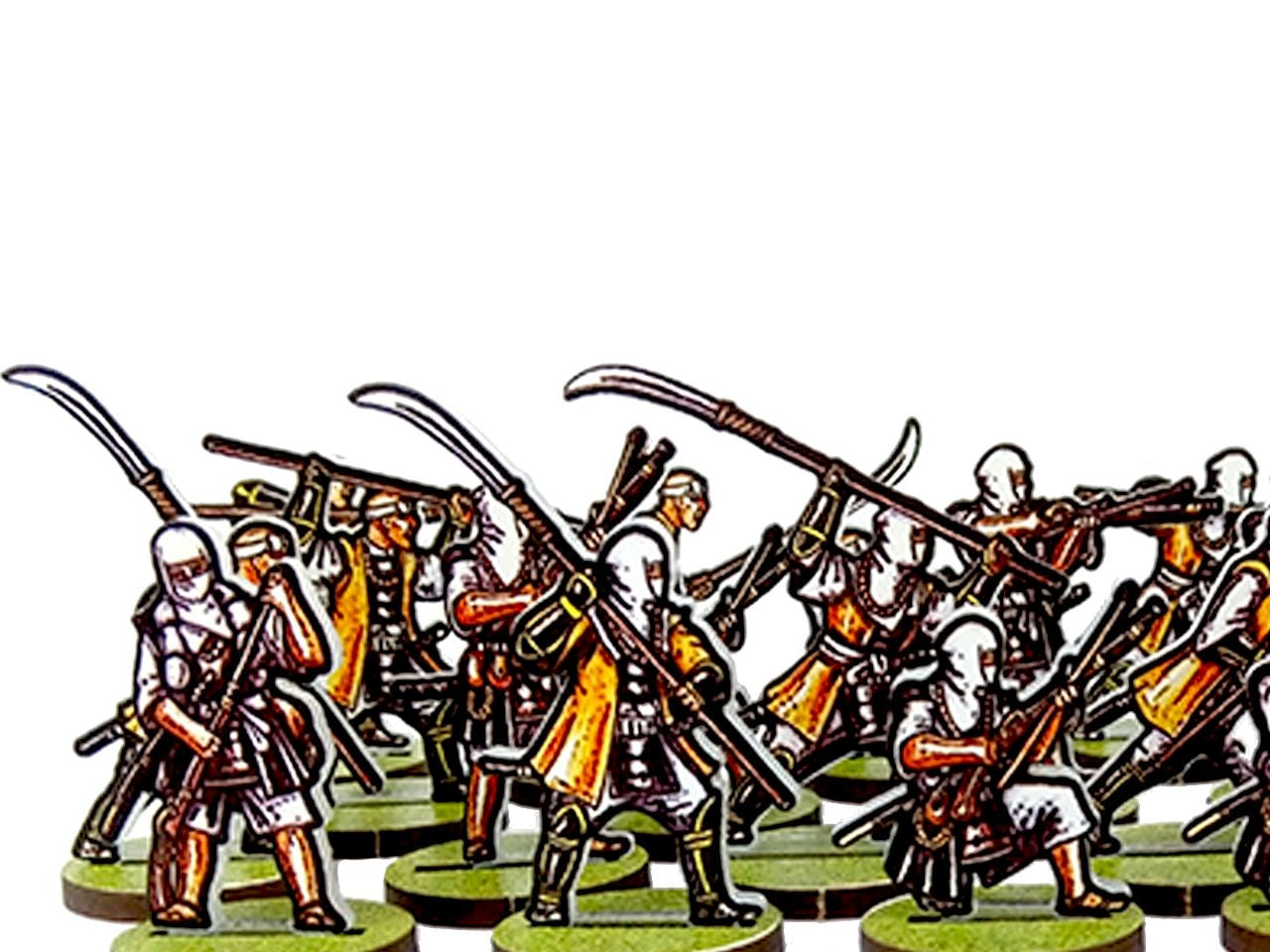 The Warrior Monks Set is crafted on a 15x20 cm Plexiglass sprue and includes: