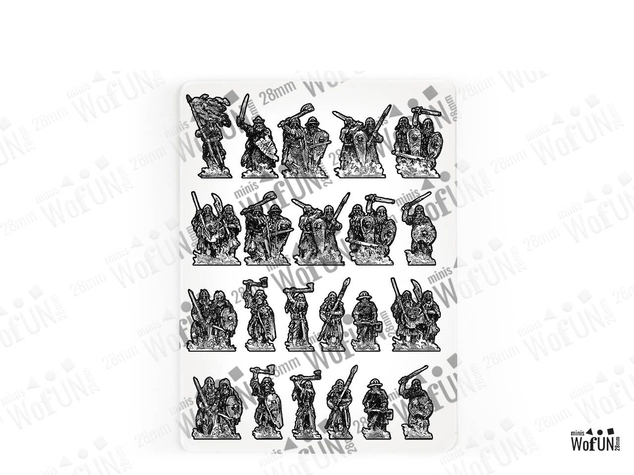 - 32 figurines at the 28 mm scale, or