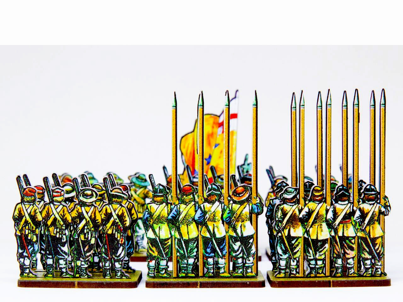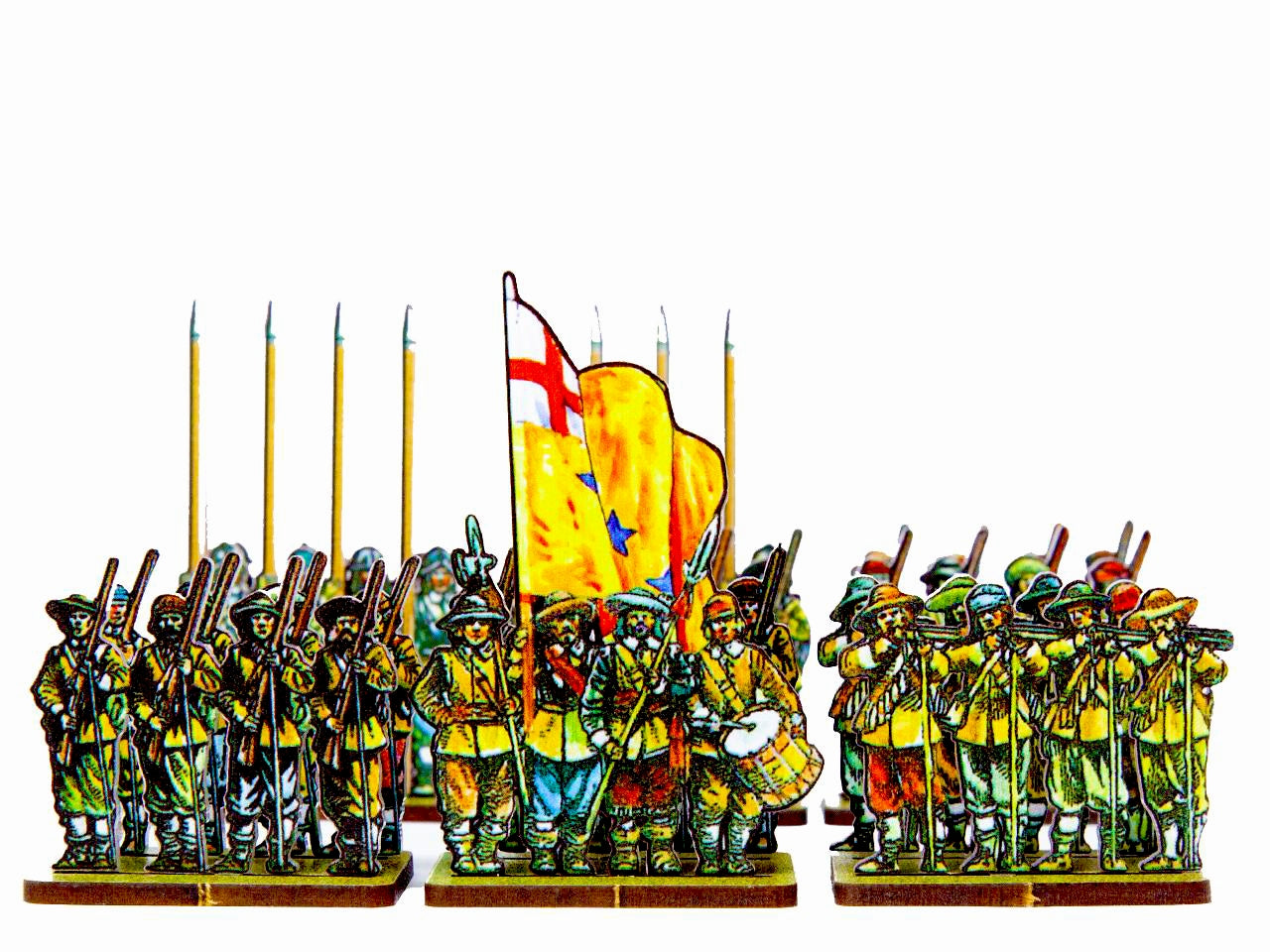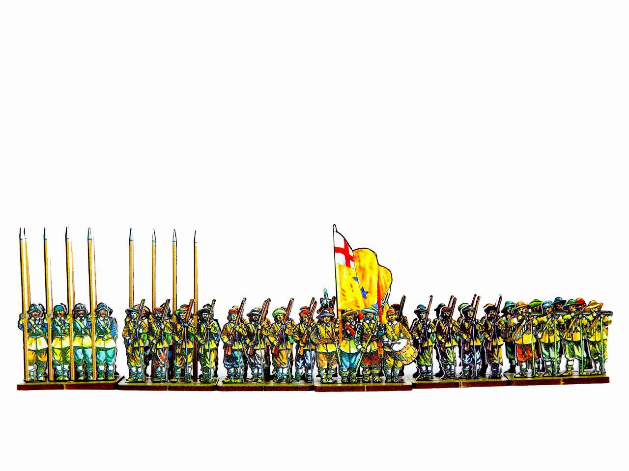 The Yellowcoat Regiment Set is crafted on a 15x20 cm Plexiglass sprue and includes: