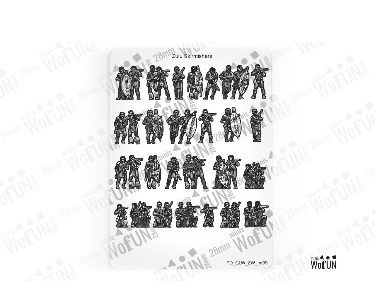 The Zulu Skirmishers Set is crafted on a 15x20 cm Plexiglass sprue and includes:
